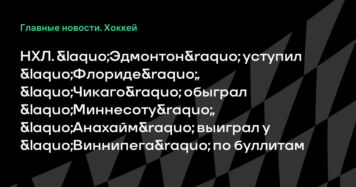 НХЛ. «Эдмонтон» уступил «Флориде», «Чикаго» обыграл «Миннесоту», «Анахайм» выиграл у «Виннипега» по буллитам