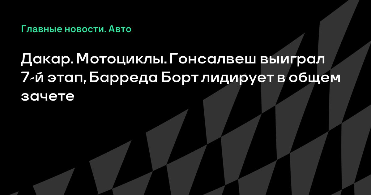 Дакар. Мотоциклы. Гонсалвеш выиграл 7-й этап, Барреда Борт лидирует в общем зачете