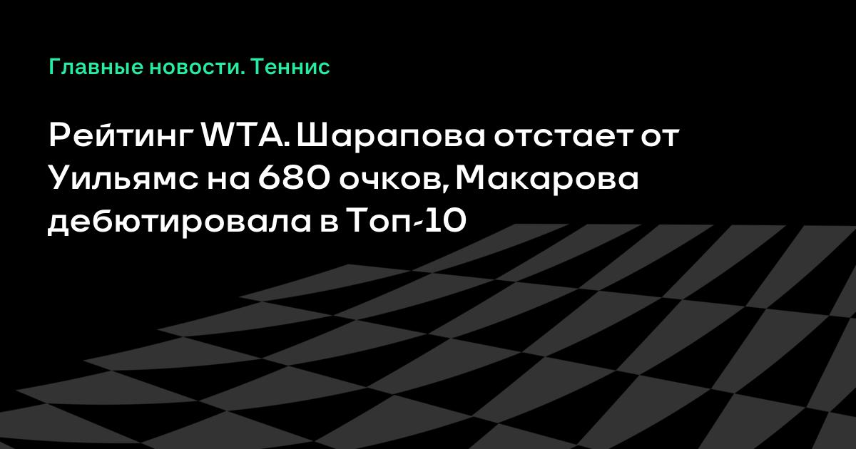 Рейтинг WTA. Шарапова отстает от Уильямс на 680 очков, Макарова дебютировала в Топ-10