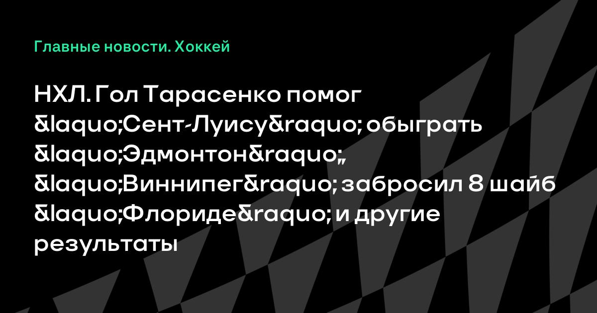 НХЛ. Гол Тарасенко помог «Сент-Луису» обыграть «Эдмонтон», «Виннипег» забросил 8 шайб «Флориде» и другие результаты