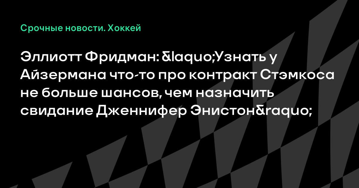 Эллиотт Фридман: «Узнать у Айзермана что-то про контракт Стэмкоса не больше шансов, чем назначить свидание Дженнифер Энистон»