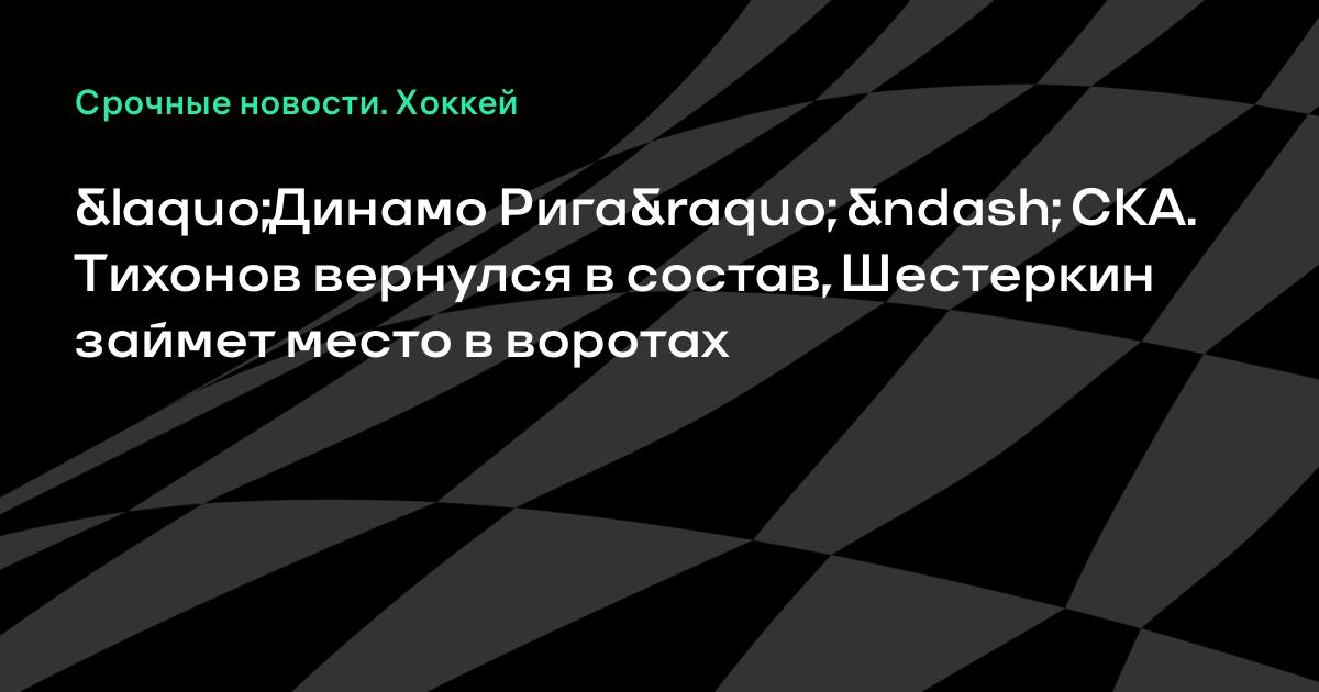 «Динамо Рига» – СКА. Тихонов вернулся в состав, Шестеркин займет место в воротах