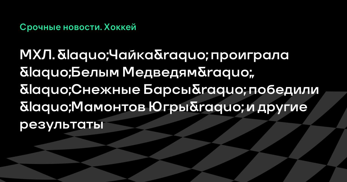 МХЛ. «Чайка» проиграла «Белым Медведям», «Снежные Барсы» победили «Мамонтов Югры» и другие результаты