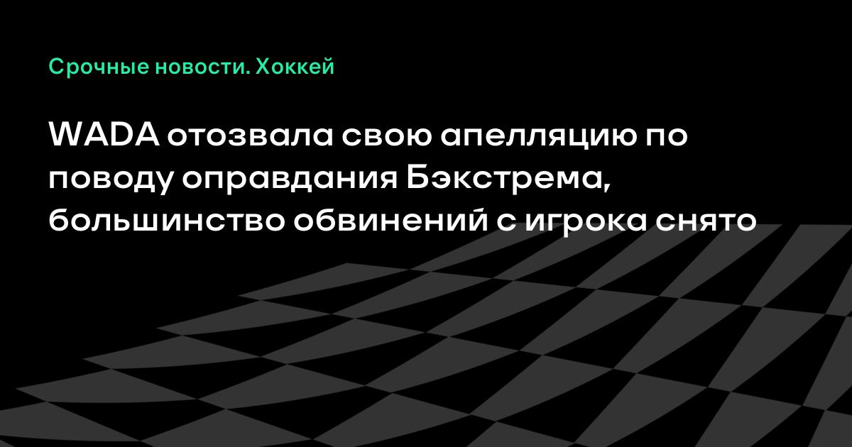 WADA отозвала свою апелляцию по поводу оправдания Бэкстрема, большинство обвинений с игрока снято