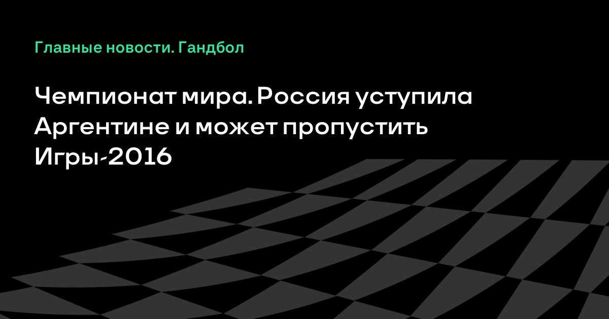 Сегодня в Катаре прошли матчи пятого тура группового этапа чемпионата мира по гандболу среди мужских команд. Сборная России уступила Аргентине (27:30) и не смогла выйти в плей-офф. Россияне сократили свои шансы на участие в Играх-2016 в Рио-де-Жанейро. Команде необходимо как можно успешнее выступить на чемпионате Европы в 2016 году.
