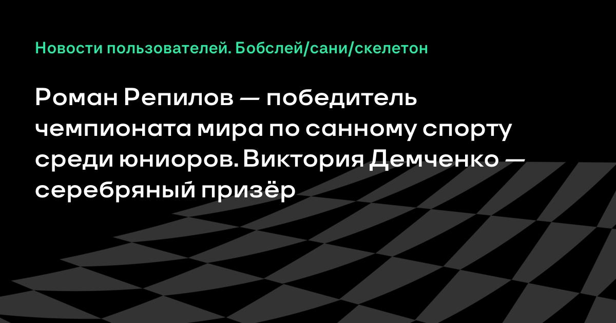 Роман Репилов — победитель чемпионата мира по санному спорту среди юниоров. Виктория Демченко — серебряный призёр