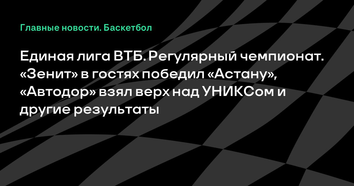 Единая лига ВТБ. Регулярный чемпионат. «Зенит» в гостях победил «Астану», «Автодор» взял верх над УНИКСом и другие результаты