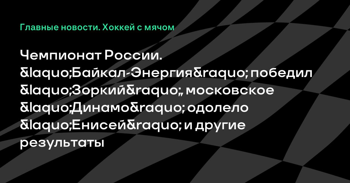 Чемпионат России. «Байкал-Энергия» победил «Зоркий», московское «Динамо» одолело «Енисей» и другие результаты