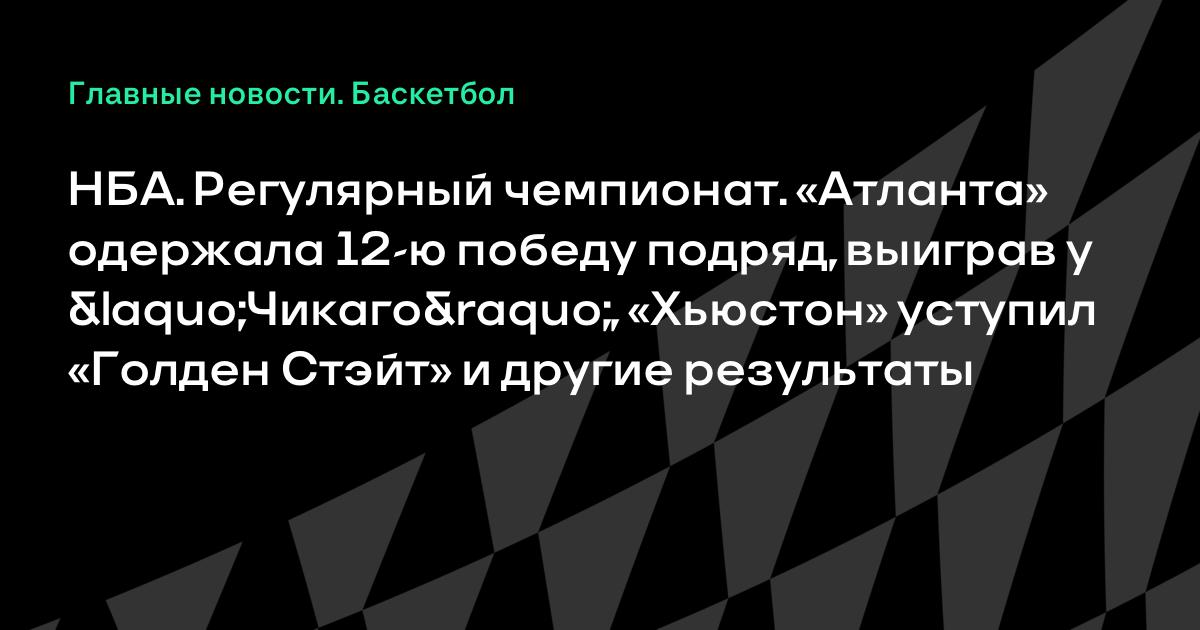 НБА. Регулярный чемпионат. «Атланта» одержала 12-ю победу подряд, выиграв у «Чикаго», «Хьюстон» уступил «Голден Стэйт» и другие результаты Сегодня в регулярном чемпионате НБА прошли восемь матчей. «Атланта» одержала 12-ю победу подряд, взяв верх в выездной встрече с другим претендентом от Восточной конференции «Чикаго». Лидер розыгрыша «Голден Стэйт» обыграл в гостях «Хьюстон».
