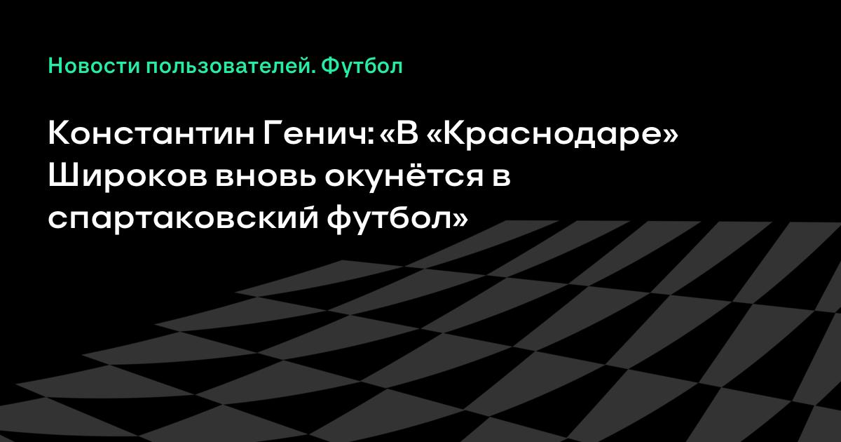 Константин Генич: «В «Краснодаре» Широков вновь окунётся в спартаковский футбол»