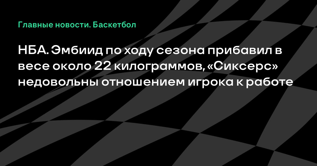 Новичок «Филадельфии» Джоэль Эмбиид по ходу нынешнего сезона поправился на 22 килограмма по сравнению с весом, который был у него в период выступления за университет Канзаса, утверждает The Philadelphia Inquirer.