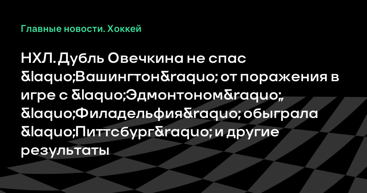 НХЛ. Дубль Овечкина не спас «Вашингтон» от поражения в игре с «Эдмонтоном», «Филадельфия» обыграла «Питтсбург» и другие результаты