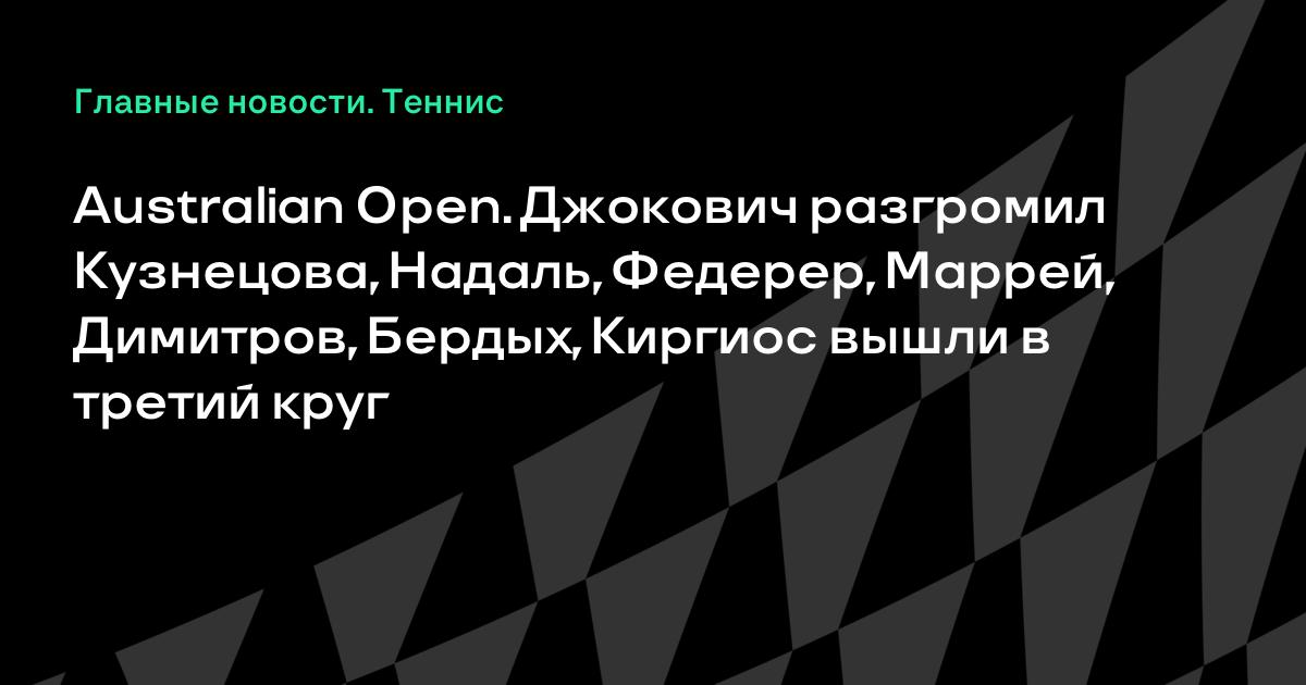 Australian Open. Джокович разгромил Кузнецова, Надаль, Федерер, Маррей, Димитров, Бердых, Киргиос вышли в третий круг