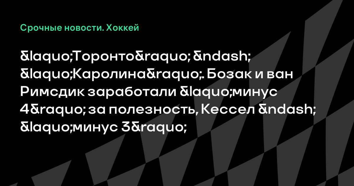 «Торонто» – «Каролина». Бозак и ван Римсдик заработали «минус 4» за полезность, Кессел – «минус 3»