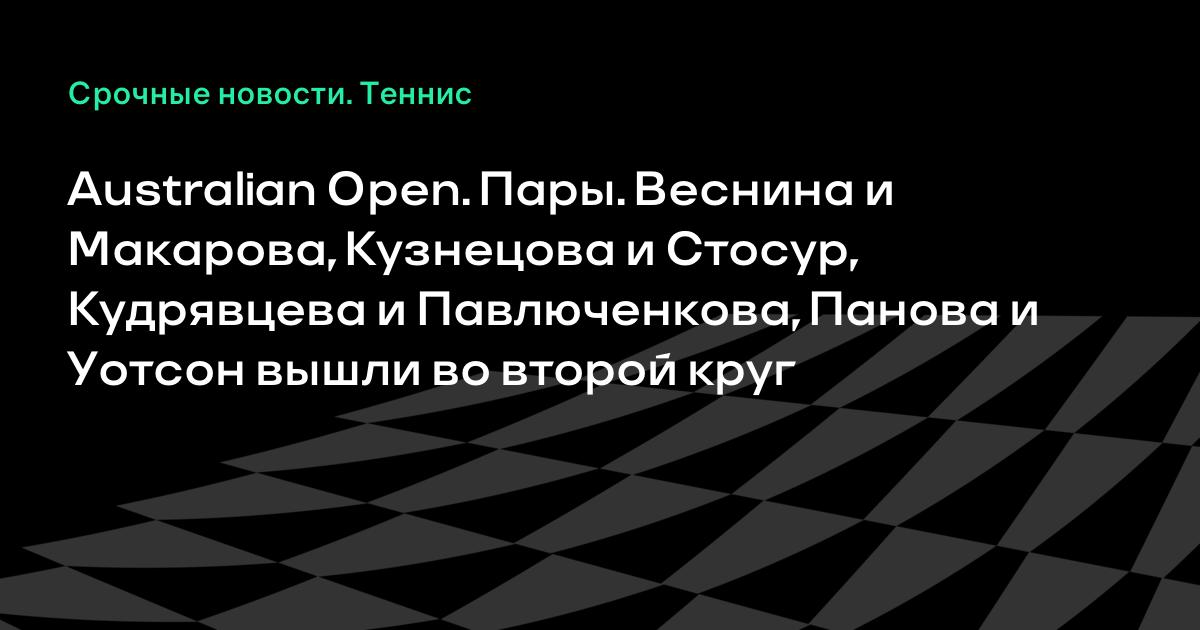 Australian Open. Пары. Веснина и Макарова, Кузнецова и Стосур, Кудрявцева и Павлюченкова, Панова и Уотсон вышли во второй круг