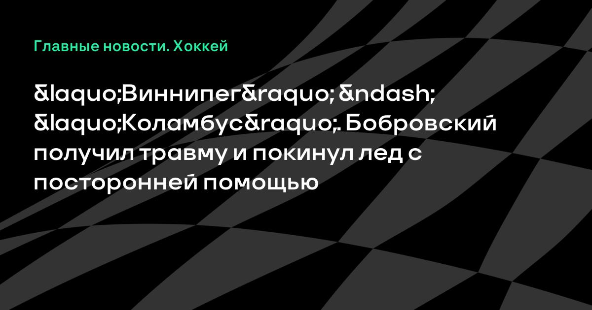 Голкипер «Коламбуса» Сергей Бобровский получил травму в матче с «Виннипегом» (0:4, идет третий период) и был заменен.