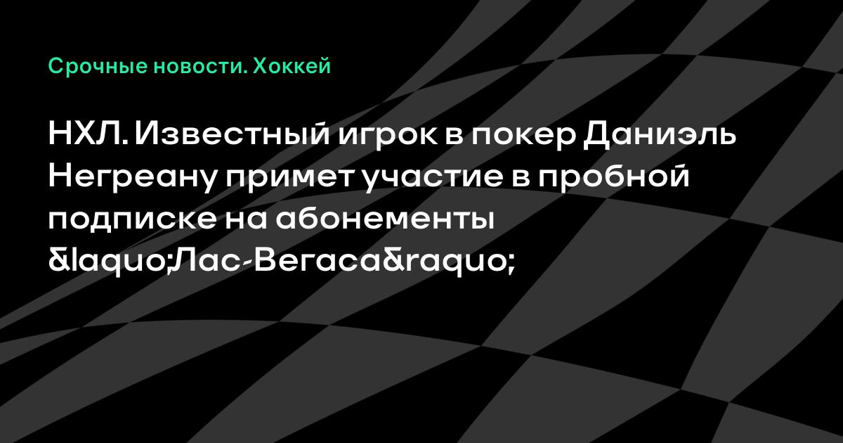 НХЛ. Известный игрок в покер Даниэль Негреану примет участие в пробной подписке на абонементы «Лас-Вегаса»