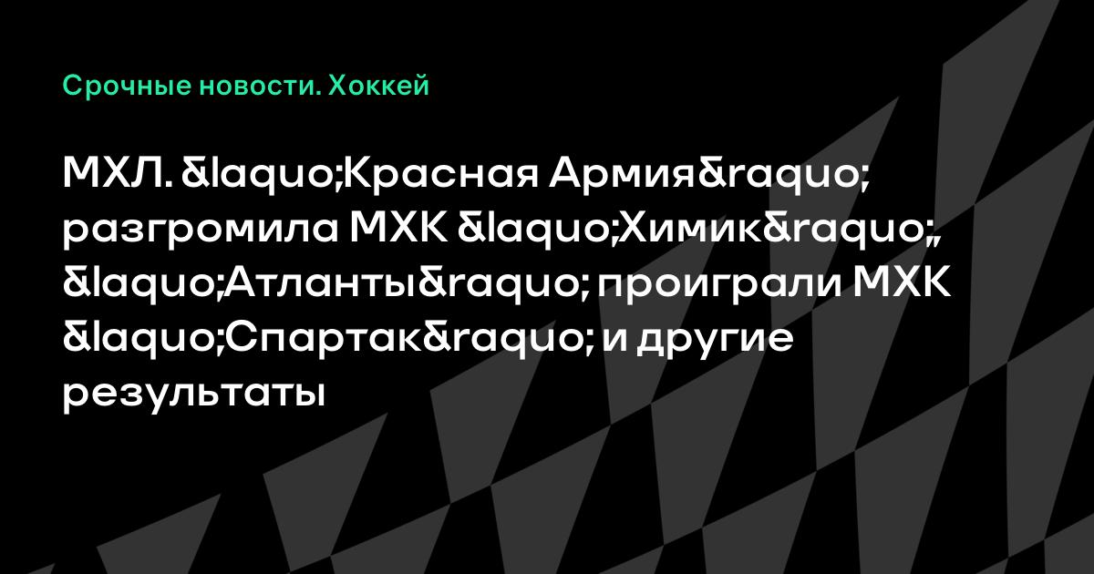 Сегодня в регулярном чемпионате МХЛ прошло 6 матчей. «Красная Армия» разгромила МХК «Химик», «Атланты» проиграли МХК «Спартак», «СКА-Серебряные Львы» и «Локо» забили 13 голов на двоих.