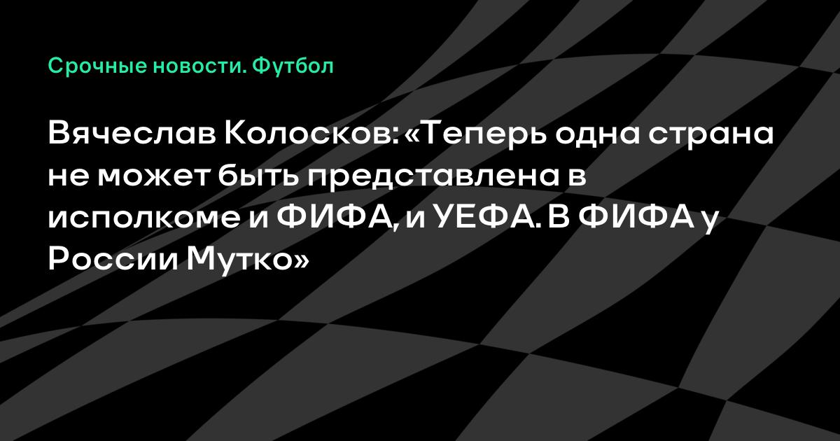 Вячеслав Колосков: «Теперь одна страна не может быть представлена в исполкоме и ФИФА, и УЕФА. В ФИФА у России Мутко»