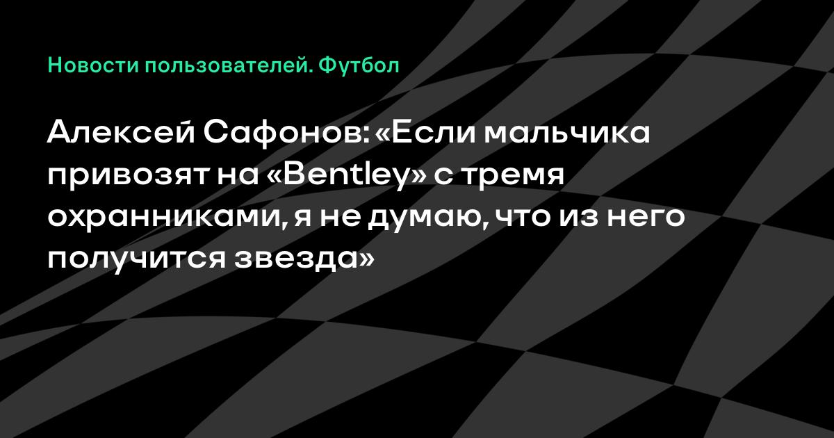 Алексей Сафонов: «Если мальчика привозят на «Bentley» с тремя охранниками, я не думаю, что из него получится звезда»