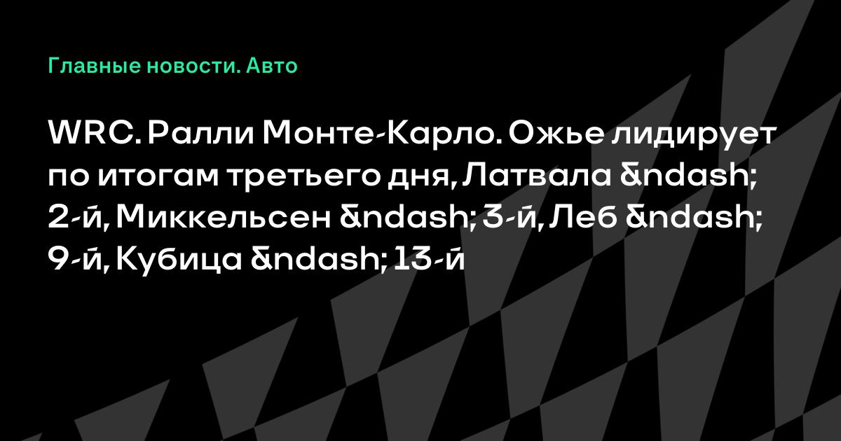 WRC. Ралли Монте-Карло. Ожье лидирует по итогам третьего дня, Латвала – 2-й, Миккельсен – 3-й, Леб – 9-й, Кубица – 13-й