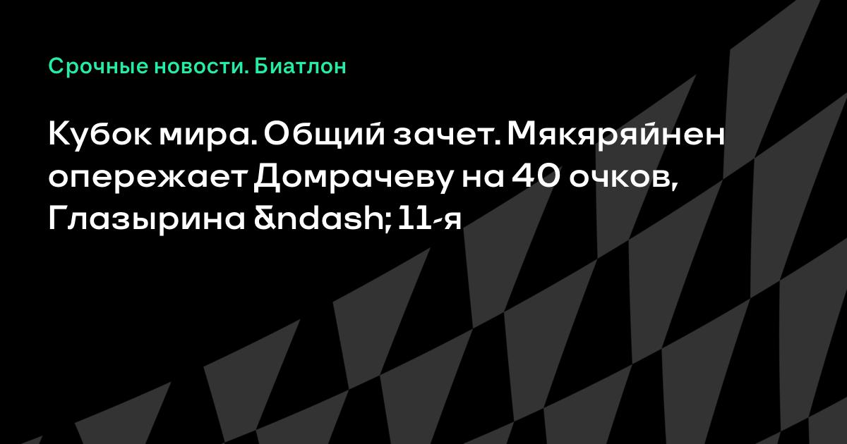 Кубок мира. Общий зачет. Мякяряйнен опережает Домрачеву на 40 очков, Глазырина – 11-я