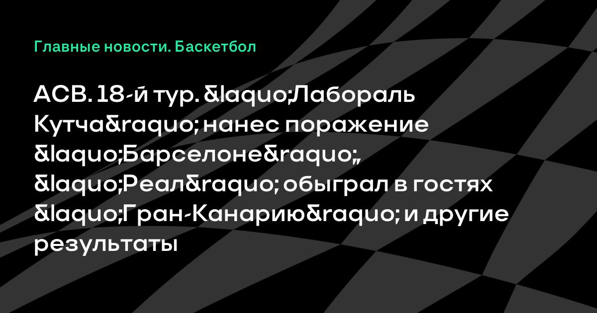 ACB. 18-й тур. «Лабораль Кутча» нанес поражение «Барселоне», «Реал» обыграл в гостях «Гран-Канарию» и другие результаты