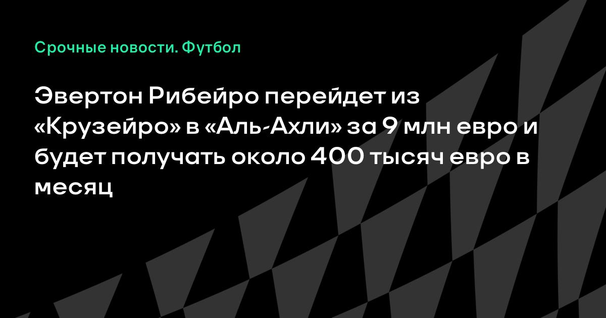 Эвертон Рибейро перейдет из «Крузейро» в «Аль-Ахли» за 9 млн евро и будет получать около 400 тысяч евро в месяц