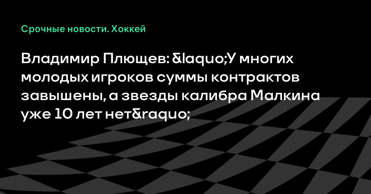 Владимир Плющев: «У многих молодых игроков суммы контрактов завышены, а звезды калибра Малкина уже 10 лет нет»