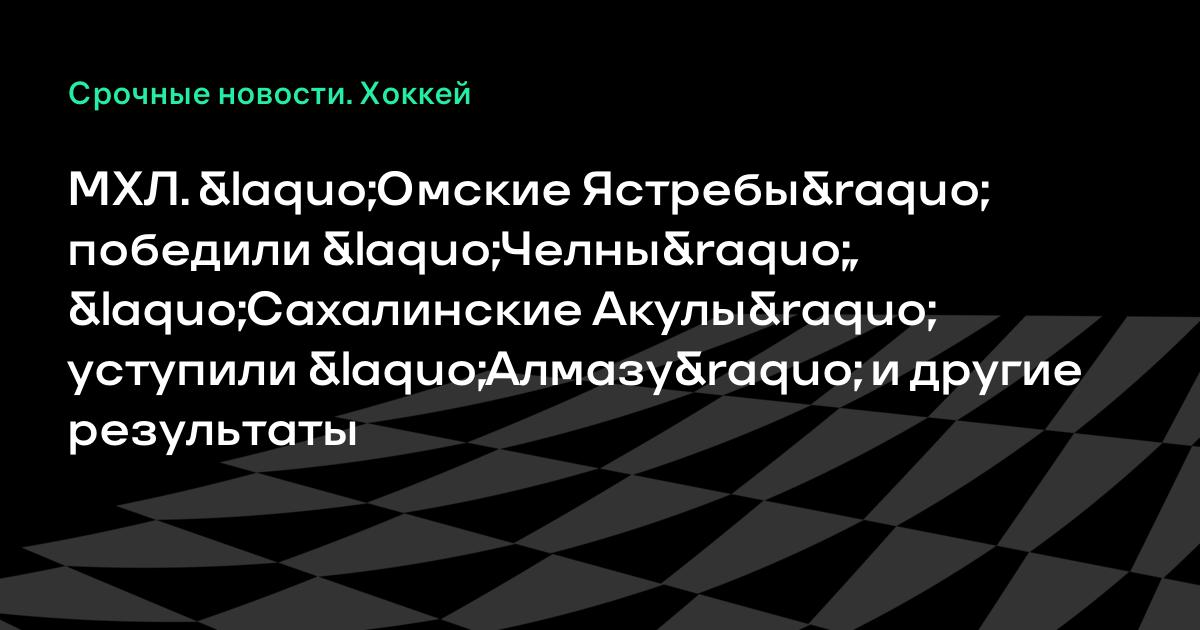 МХЛ. «Омские Ястребы» победили «Челны», «Сахалинские Акулы» уступили «Алмазу» и другие результаты