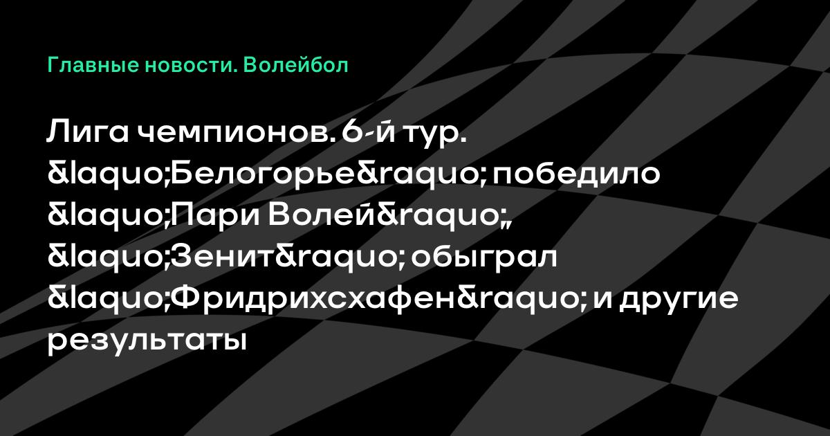 Лига чемпионов. 6-й тур. «Белогорье» победило «Пари Волей», «Зенит» обыграл «Фридрихсхафен» и другие результаты