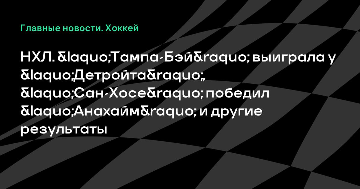 НХЛ. «Тампа-Бэй» выиграла у «Детройта», «Сан-Хосе» победил «Анахайм» и другие результаты