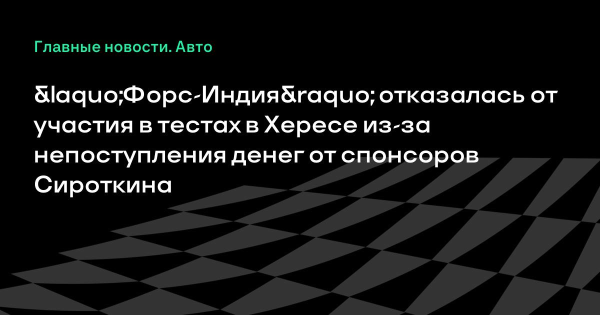 Отказ «Форс-Индии» от участия в первых тестах в Хересе связан с тем, что команда не получила спонсорские деньги от нового резервного пилота Сергея Сироткина, об этом сообщил корреспондент финского издания Turun Sanomat Луис Васконселос.