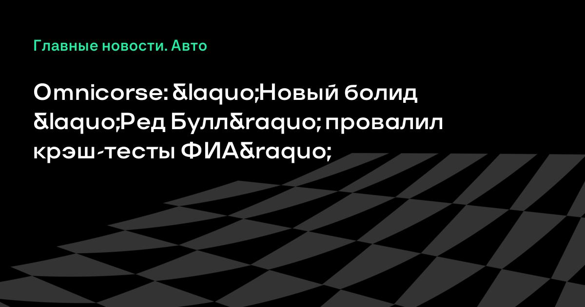 Новый болид «Ред Булл» не прошел обязательные крэш-тесты ФИА, сообщает Omnicorse.