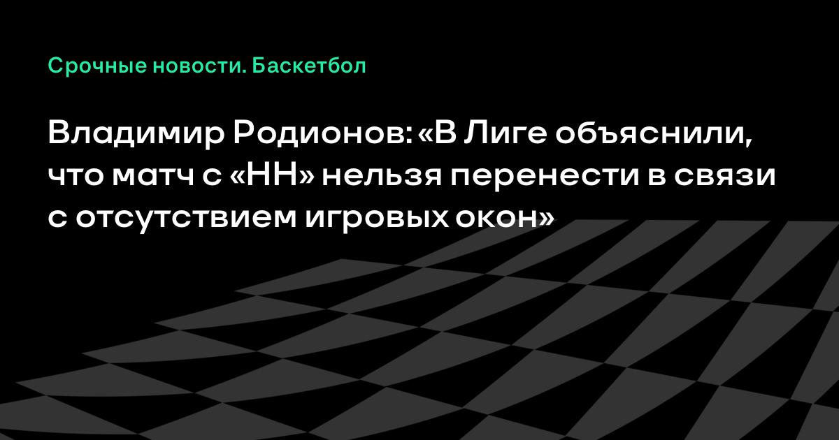 «Я не отказывался от переноса матча с «НН», но в лиге нам объяснили, что это невозможно в связи с отсутствием игровых окон. Совсем недавно мы попали в схожую ситуацию с нижегородским клубом: 25 января мы играли в гостях с клубом «Локомотив-Кубань», а уже 27-го вышли на игру против немецкого «Скайлайнерс». Кубанский клуб не захотел переносить игру, и во Франкфурте мы еле волочили ноги. Увы, но в баскетболе часто бывают такие напряженные графики игр. Повторюсь, я был не против переноса матча», – цитируют Владимира Родионова «Известия».