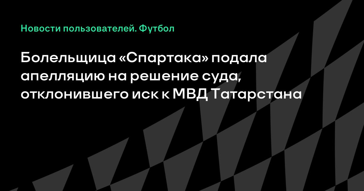 Болельщица футбольного клуба «Спартак» Екатерина Степанова подала апелляционную жалобу на решение Гагаринского суда Москвы об отклонении иска к МВД Татарстана. Об этом Степанова рассказала корр. ТАСС.