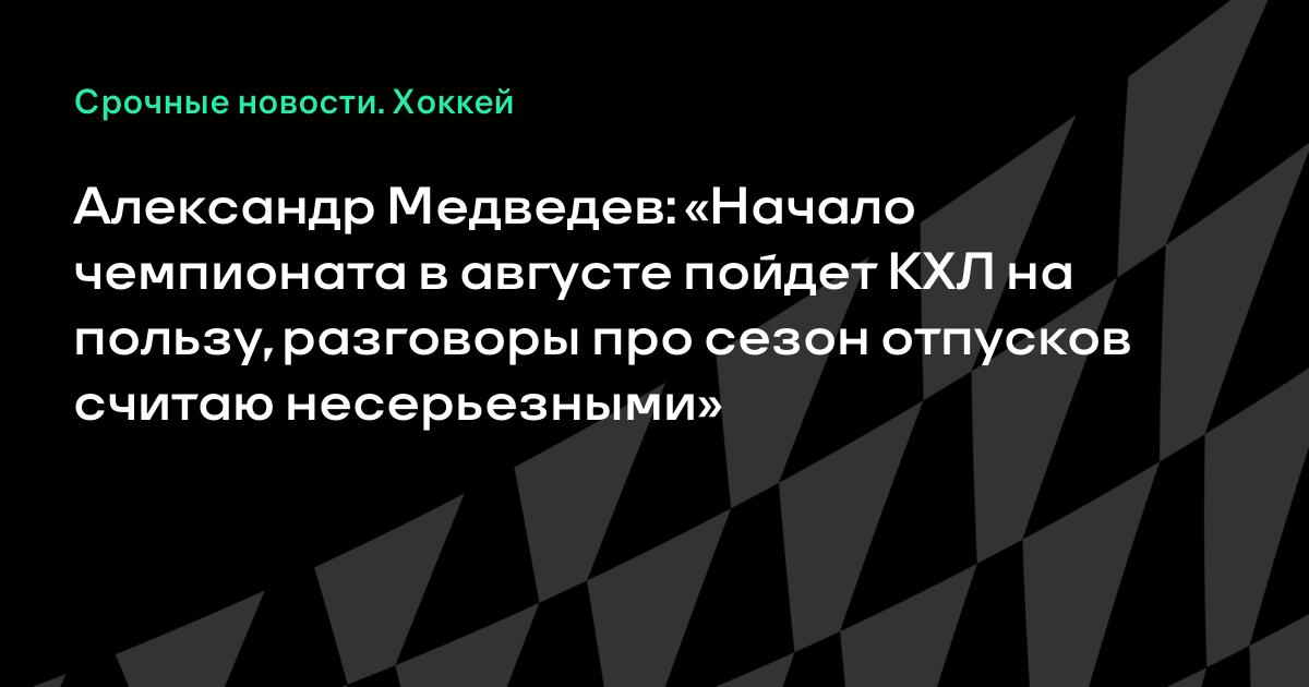 Александр Медведев: «Начало чемпионата в августе пойдет КХЛ на пользу, разговоры про сезон отпусков считаю несерьезными»