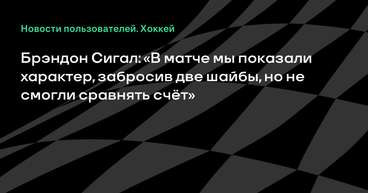 Брэндон Сигал: «В матче мы показали характер, забросив две шайбы, но не смогли сравнять счёт»