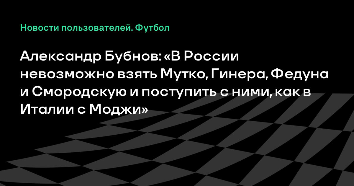 Александр Бубнов: «В России невозможно взять Мутко, Гинера, Федуна и Смородскую и поступить с ними, как в Италии с Моджи»