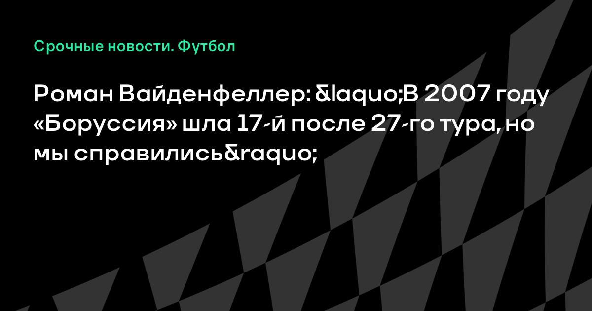 Роман Вайденфеллер: «В 2007 году «Боруссия» шла 17-й после 27-го тура, но мы справились»
