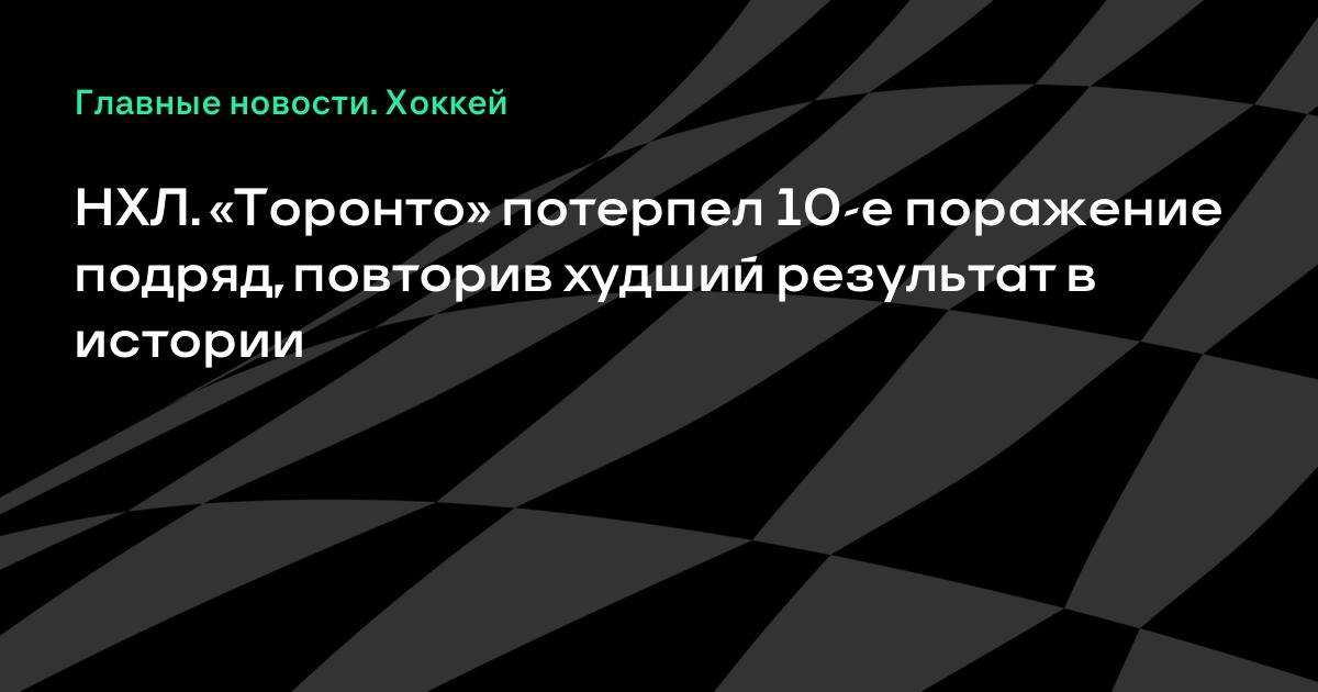 НХЛ. «Торонто» потерпел 10-е поражение подряд, повторив худший результат в истории