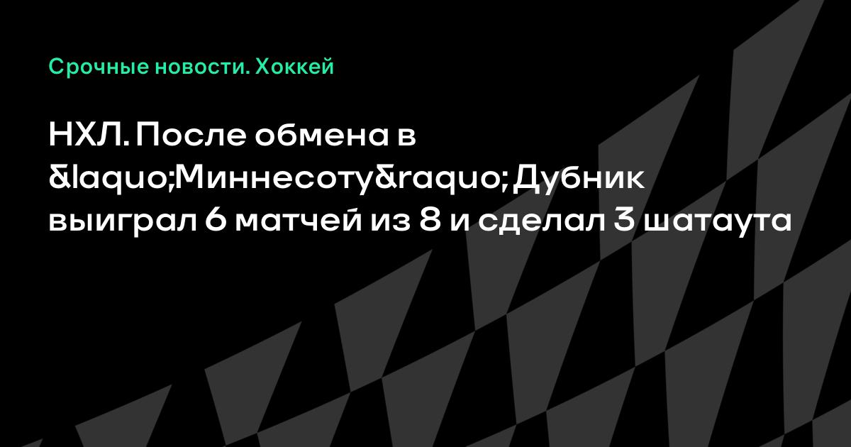 Вратарь «Миннесоты» Деван Дубник отразил все 24 броска по своим воротам в матче с «Чикаго» (3:0).После обмена из «Аризоны» Дубник выиграл 6 из 8 матчей в составе «Миннесоты», 3 из них – «сухие».