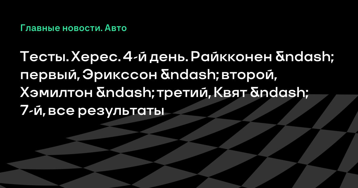 Тесты. Херес. 4-й день. Райкконен – первый, Эрикссон – второй, Хэмилтон – третий, Квят – 7-й, все результаты