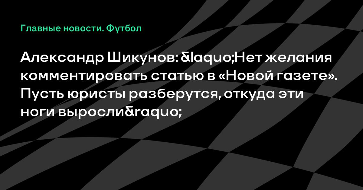 Александр Шикунов: «Нет желания комментировать статью в «Новой газете». Пусть юристы разберутся, откуда эти ноги выросли»