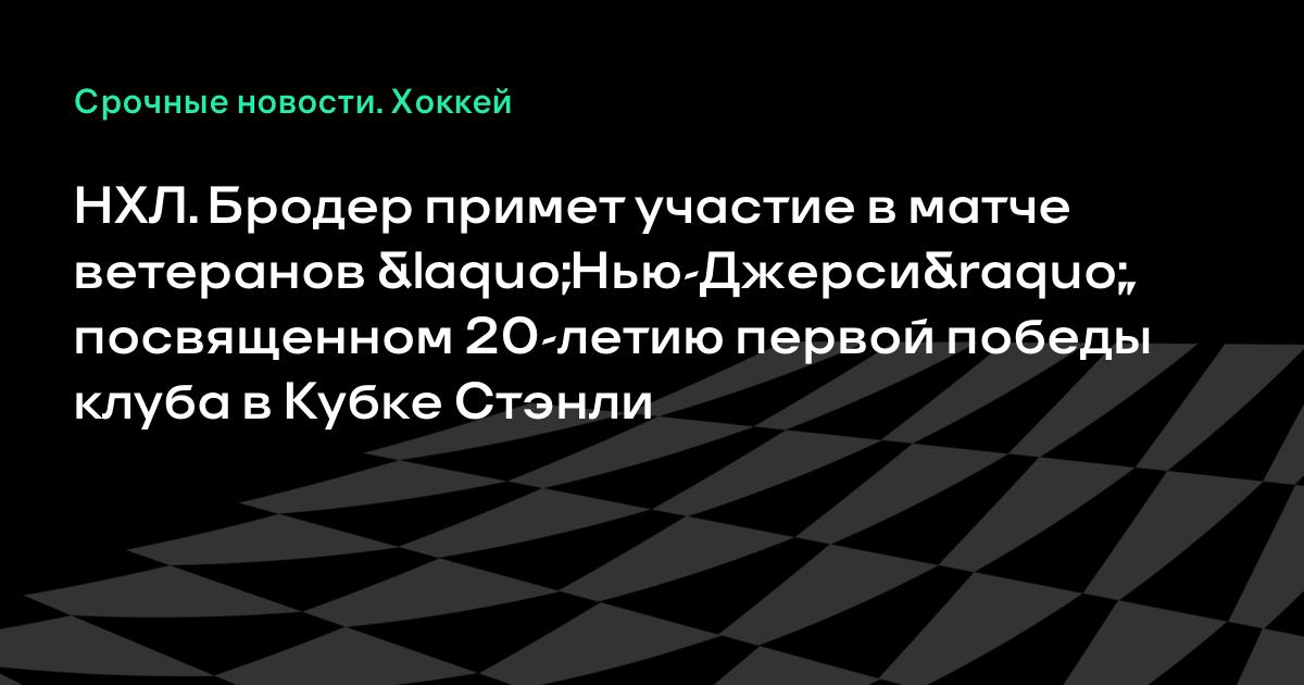 НХЛ. Бродер примет участие в матче ветеранов «Нью-Джерси», посвященном 20-летию первой победы клуба в Кубке Стэнли