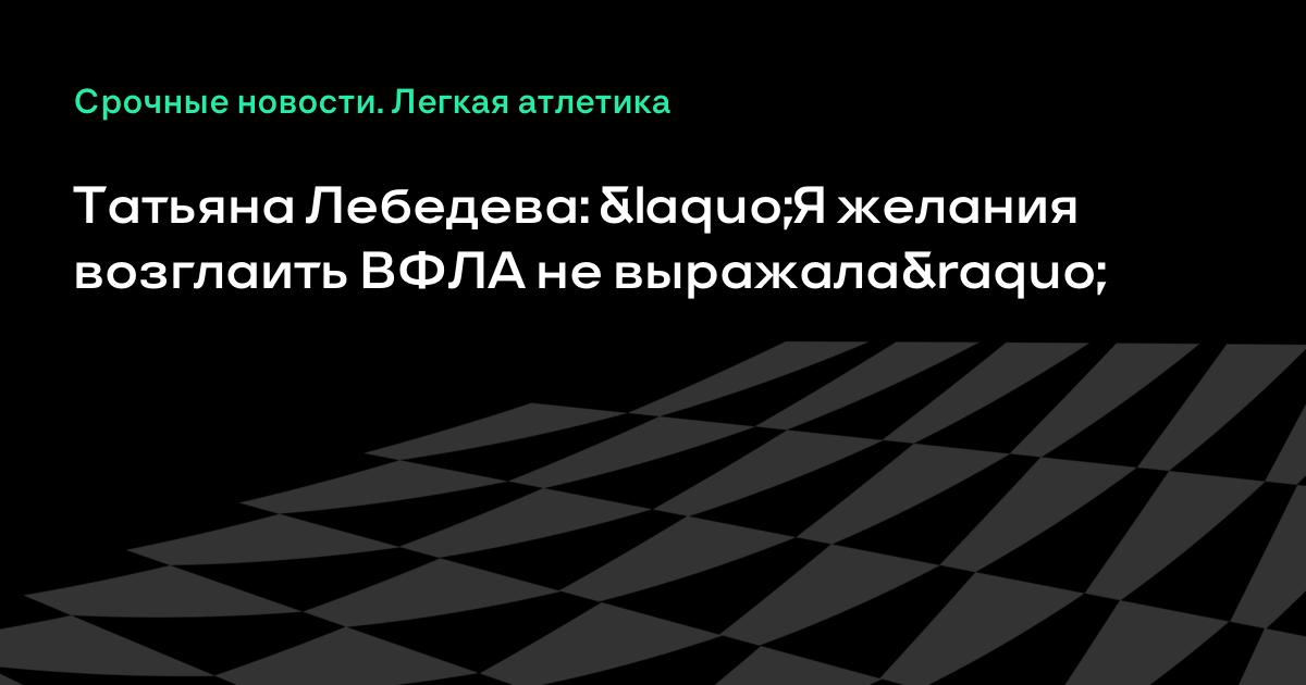 Олимпийская чемпионка по прыжкам в длину Татьяна Лебедева сообщила, что пока не претендует на должность президента Всероссийской федерации легкой атлетики (ВФЛА).