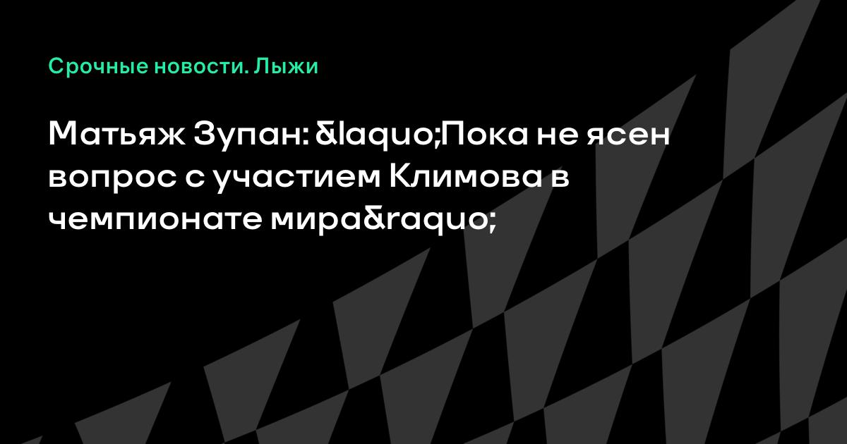 «По Климову пока не ясен вопрос с его участием в чемпионате мира в шведском Фалуне. В любом случае Евгению Климову нужно сначала выступить и заработать необходимые баллы в FIS Кубке, потом стартовать в Континентальном Кубке, и только затем он сможет соревноваться на этапах Кубка мира.