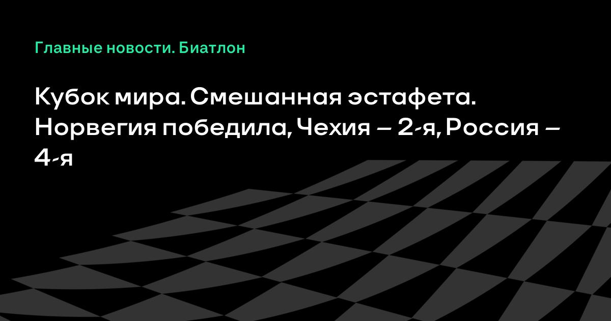 1 | Норвегия (Фанни Хурн Биркеланд, Тириль Экхофф, Йоханнес Бо, Тарьей Бо) | 1:12.49,2 (0+6) |