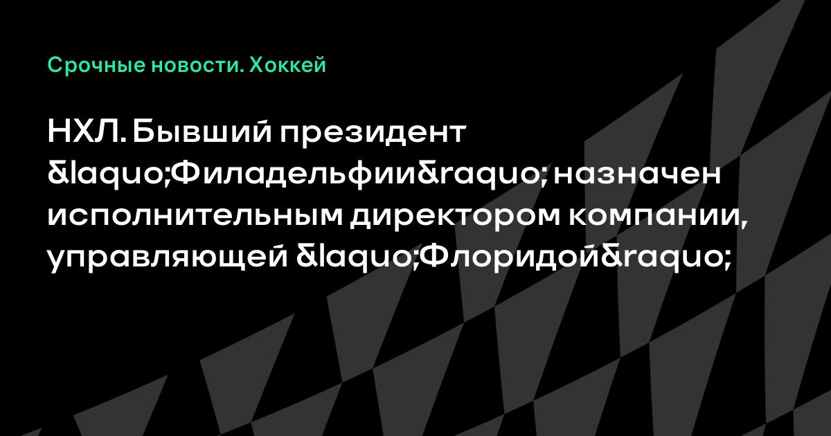 НХЛ. Бывший президент «Филадельфии» назначен исполнительным директором компании, управляющей «Флоридой»