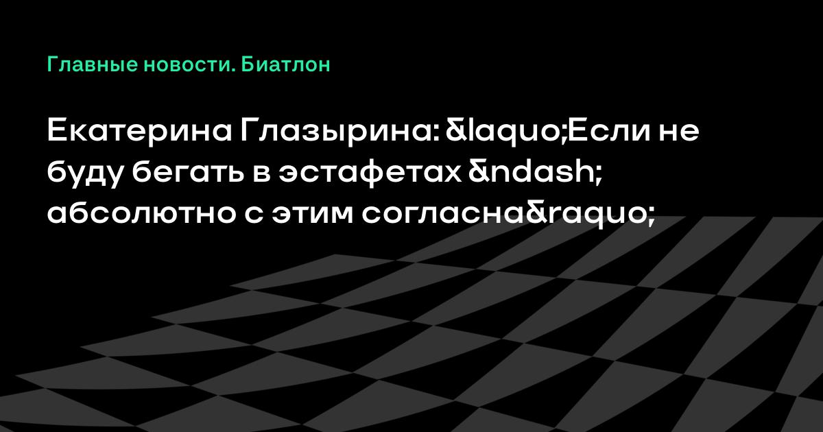 Российская биатлонистка Екатерина Глазырина рассказала о том, что может отказаться от участия в эстафетах, если такое решение примут тренеры.